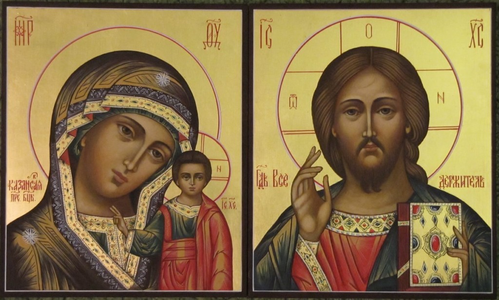 - Две иконы — с изображением Спасителя и Божьей Матери;